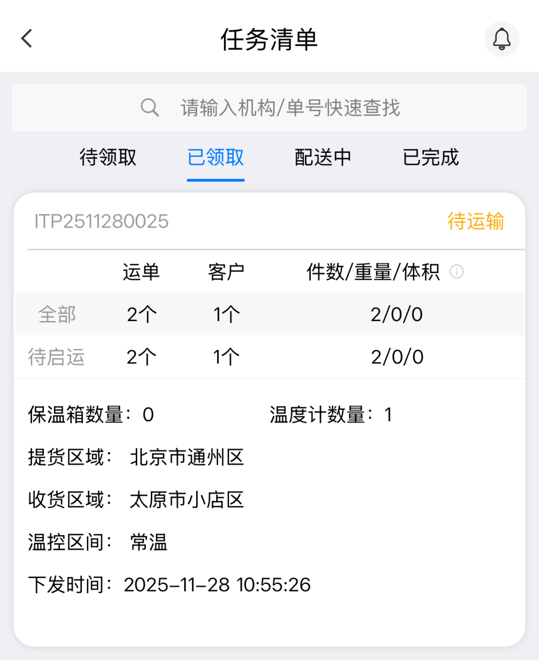 在医药配送场景中,调度环节对整体运输效率和服务稳定性有着深远影响。本轮系统更新中,在【调度】与【查询】维度新增并前置了多项关键字段与筛选条件,包括快递产品类型、承运商信息、预计到达时间以及承运商要求等,并统一呈现在调度与查询页面。
